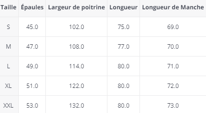 - N'oublie pas de te référer au guide des tailles