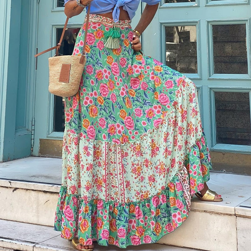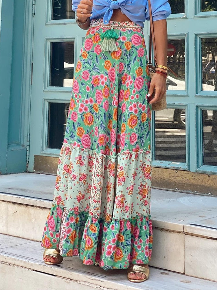 Long Floral Skirt retro bohemian