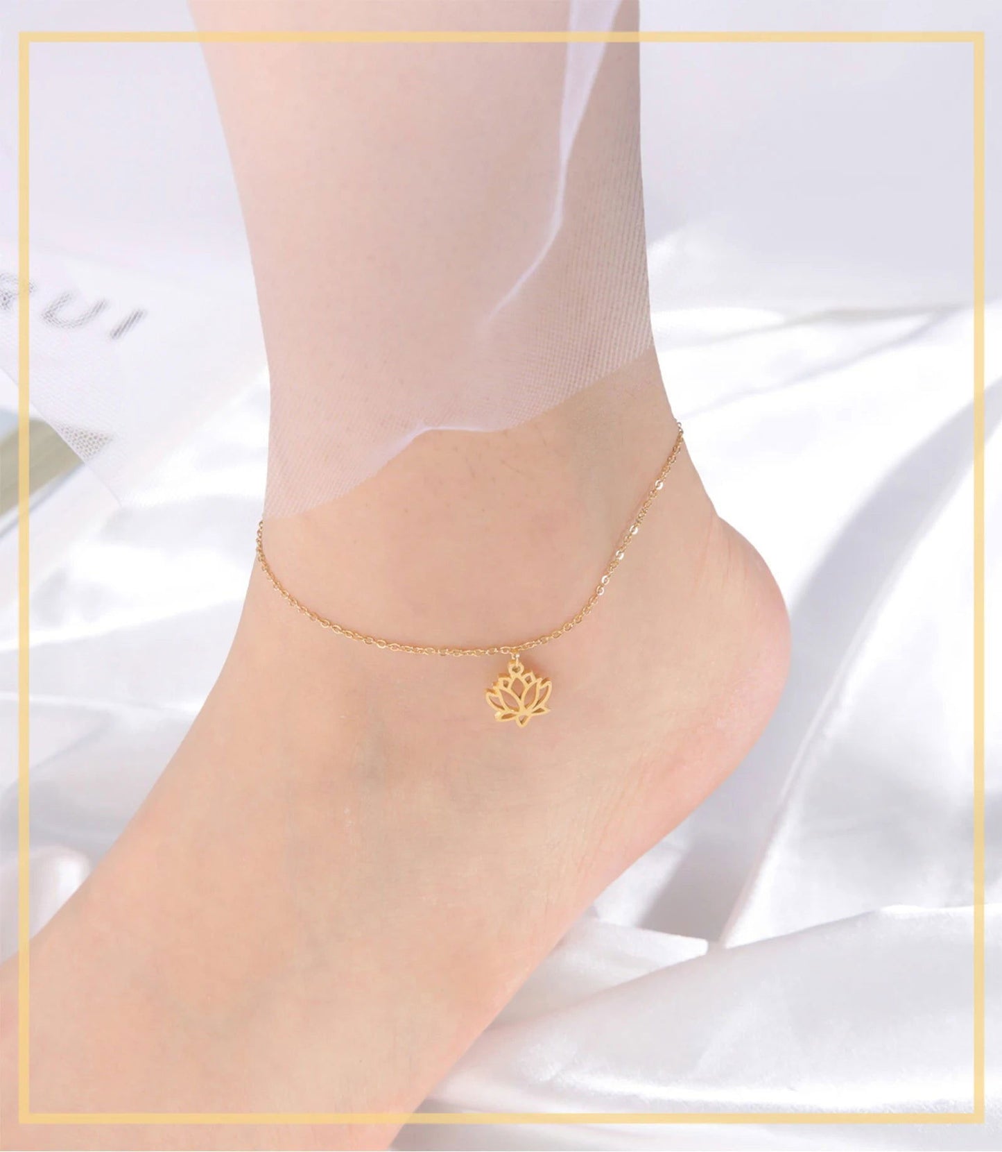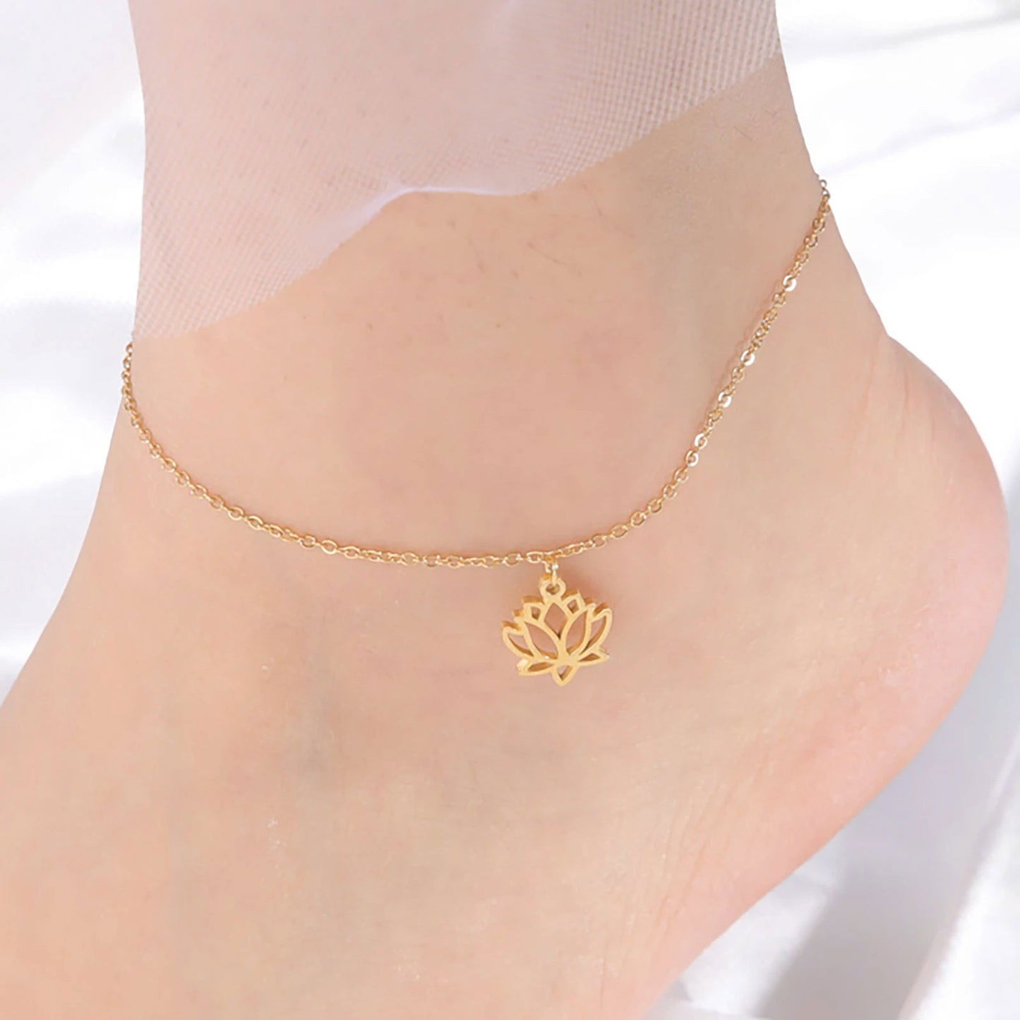 Pulsera de tobillo de flor de loto