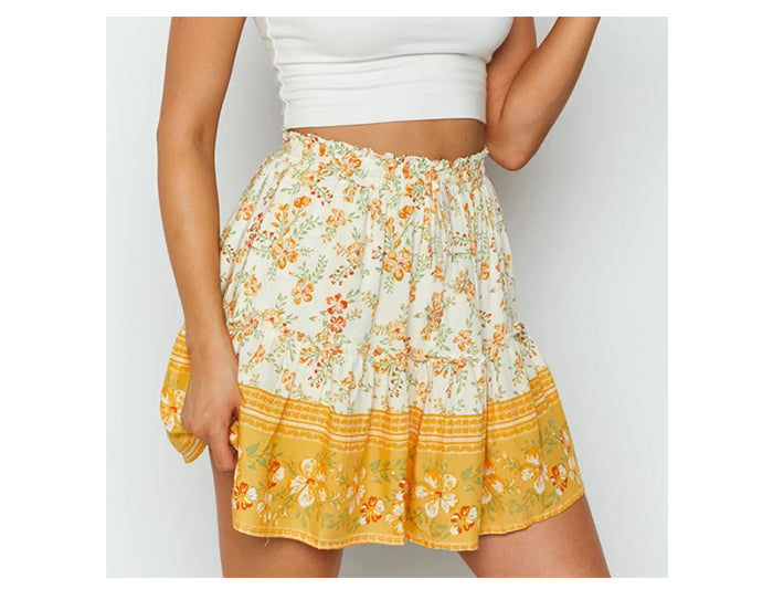 Jupe Fleurie Bohème Courte Jaune