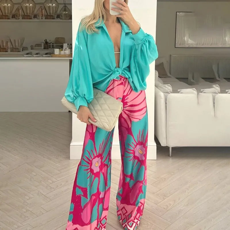 Pantalon Large Fleuri Coloré